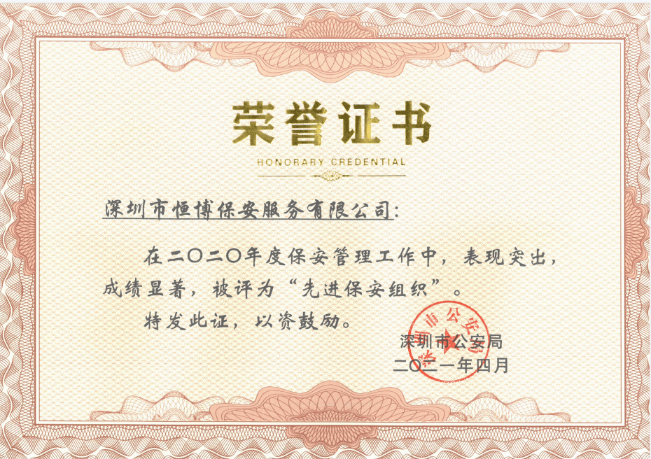 恒博保安是恒博国际集团旗下的综合性安保企业,成立于2015年,经广东省公安厅批准、深圳市公安局备案,注册资金10000万元。经过多年发展,公司积累了丰富的安保服务经验,已经形成了一支规范化、正规化的安保队伍。目前,恒博保安已经与富士康、华为、瑞声、鹏芯微、深业物业、深铁运营等上百家知名企业达成合作,为其提供专业安保、物业管理服务,拥有良好的口碑和市场认可度。